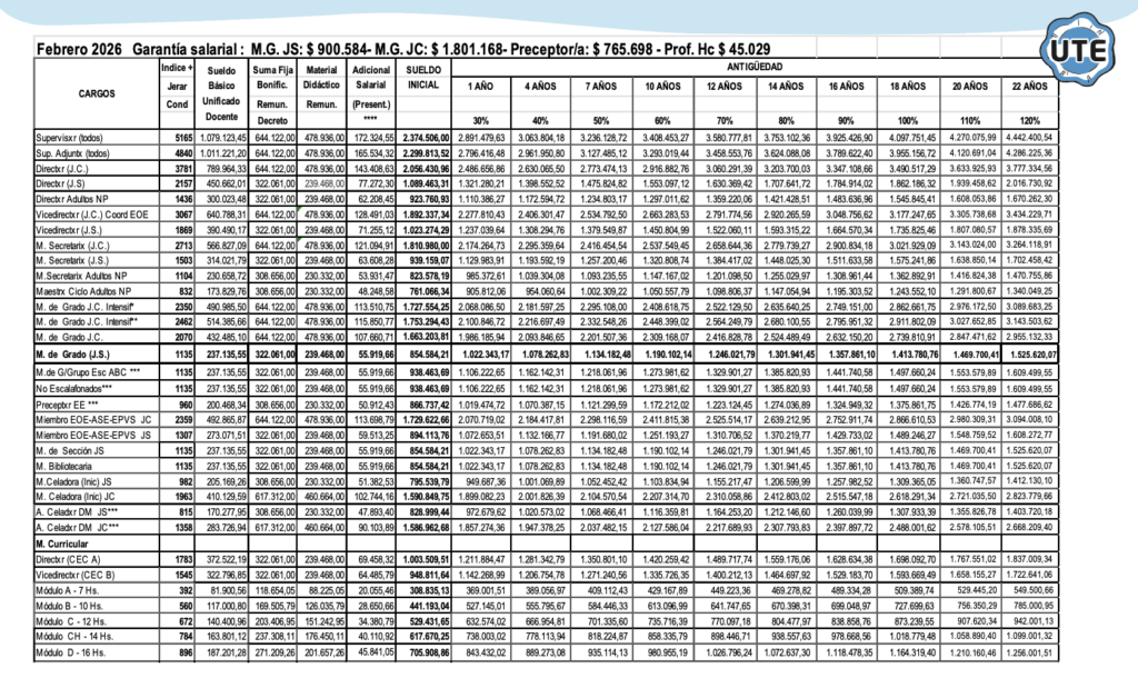 Febrero 2026 – Grilla Salarial