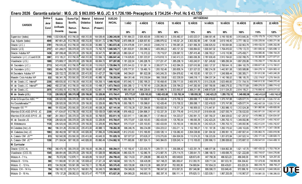 Enero 2026 – Grilla Salarial